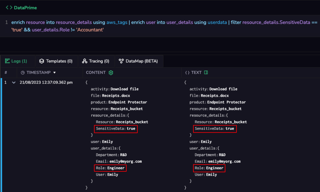 By incorporating information from lookup tables directly into log entries, you can provide analysts with more context making it easier for them to identify and respond to unauthorized access attempts. For instance, if an analyst is reviewing log entries related to user interactions with cloud resources, the lookup table can bring context on the user role (e.g. based on identity store) and the sensitivity level of the cloud resource (e.g. based on AWS resource tags). This makes it far easier for you to to identify unauthorized access to sensitive data, improve your organization’s security posture and adhere to compliance requirements.