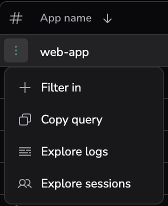 - Explore logs: Opens the Explore logs view with filters applied to the selected screen and time range.