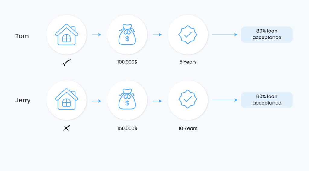 You train a machine learning model to predict the probability of a person getting a loan using the historical data of people who were accepted/rejected for loans. The data contains three features: house owner (Yes/No), income, and working experience. A global explainability technique, such as permutation importance is applied to understand the contribution of the features to the model’s predictions. The technique identifies income as the most important feature for accepting loans, however, two customers (Tom and Jerry) have similar probabilities of getting a loan with different incomes, working experience, and house ownership values. At this point, we need a local explainability technique to understand individual scenarios.