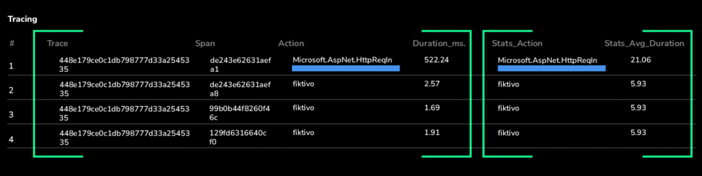 In this case, the “Microsoft.AspNet.HttpReqIn” span stood out immediately as 25× slower than its baseline, while others stayed within normal variance.