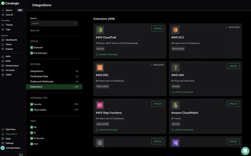 Vendors often compete by saying how many extensions or quick start packs they have. The implicit promise is: more integrations equals better observability. But that misses the point. What really matters is the quality and coverage of dashboards and alerts that you actually use to maintain system health, prevent outages and improve user experience.
