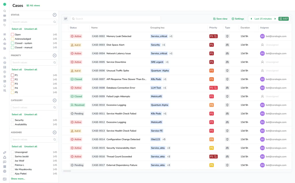 What initially looked like a widespread regional problem might turn out to be isolated to a specific service, pod, or even a single user session. Cases helps teams understand both the scope and the cause before they escalate.