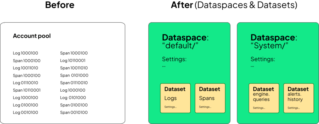 Until now, observability data was funneled into broad buckets like logs and spans that are stored together inside one account-wide pool. That works fine early on, but at scale it creates friction: