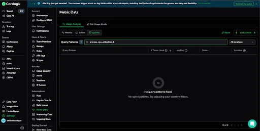 It analyzes how metrics are queried across the platform, in dashboards, alerts, and APIs, and normalizes each query into a pattern. Usage frequency, success rate, and origin (like alerts or dashboards) are all tracked and displayed, making it clear which metrics are actively used and which are sitting idle.
