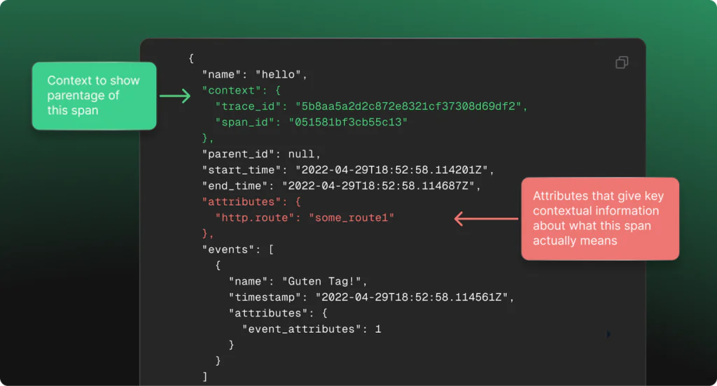 The OTel docs give the following as an example, that we have annotated for simplicity: