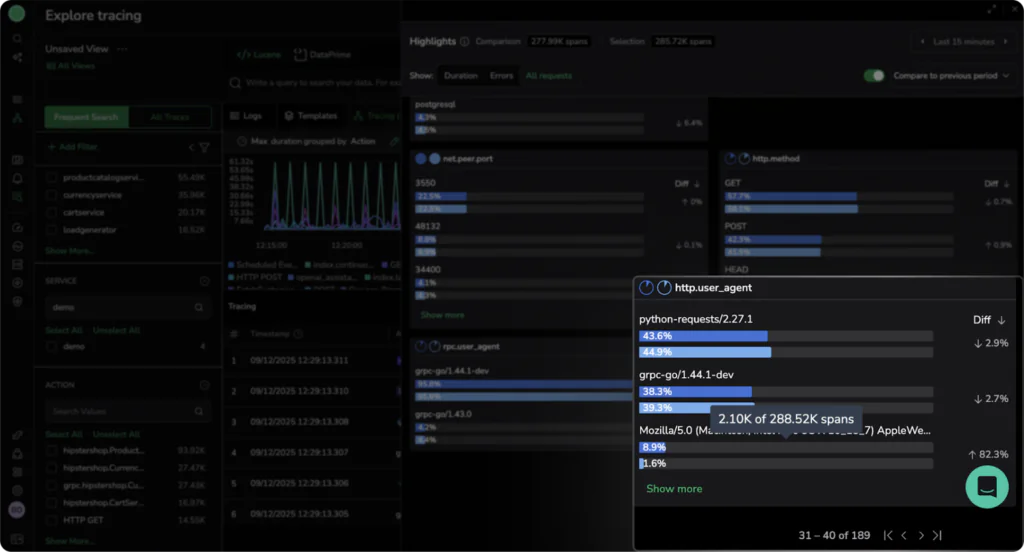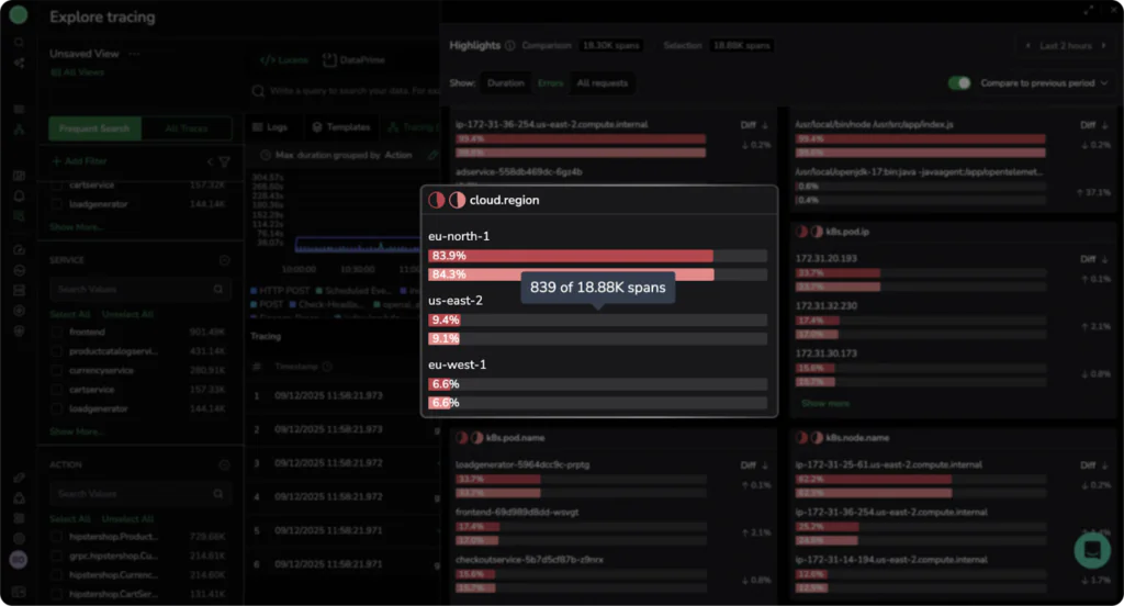 The CNCF reported that between 39% and 56% of organizations surveyed are now ingesting traces as part of their observability strategy. Tracing has become a cornerstone of any modern observability operation. Customers are regularly handling 10s of billions of spans every day, but with billions of spans, how can teams quickly figure out what is changing, what’s breaking, or what’s slowing down? At Coralogix, we recognise that a vendorless tracing solution is crucial, which is why our entire tracing stack is powered by OpenTelemetry OTLP traces.