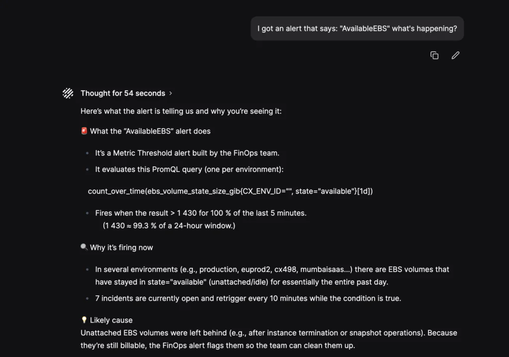 At the same time, expectations shifted. Everywhere else, people ask questions in plain language and get answers in seconds, so when teams still spend 30 to 60 minutes just orienting themselves during an incident, something feels off.