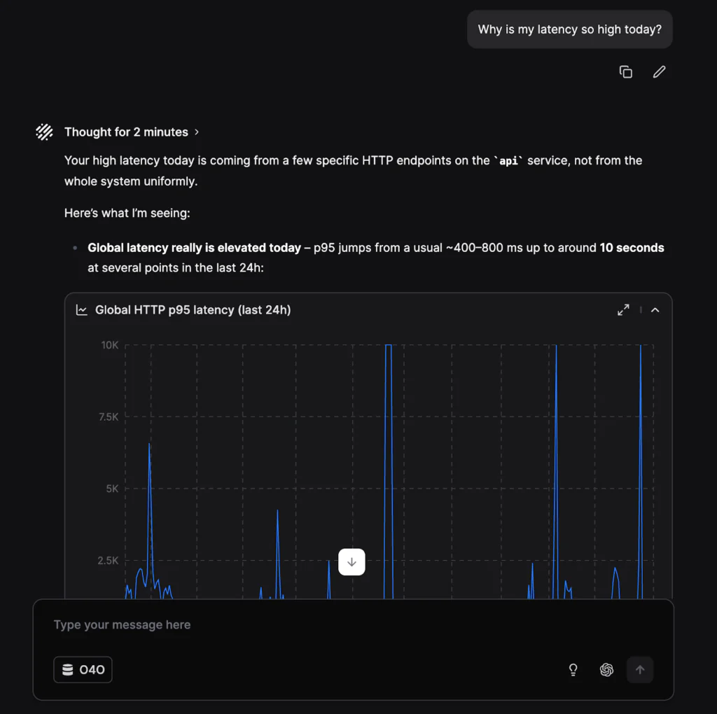 This is the difference between an AI that helps you navigate observability and an AI that actually does the work of investigation.