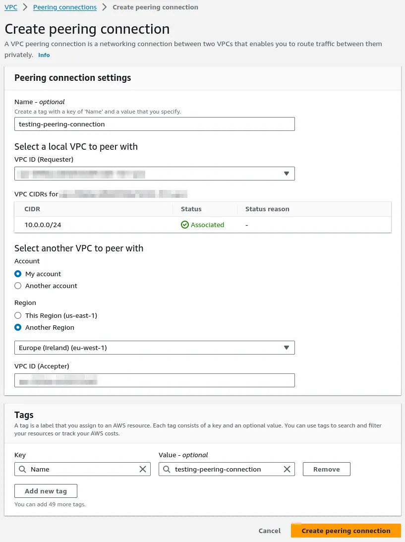Step 3: Create the VPC peering connection
