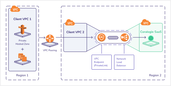 Coralogix PrivateLink requires an Interface VPC endpoint to be created in the AWS region that matches your Coralogix domain. This VPC is referred to as the same-region VPC.