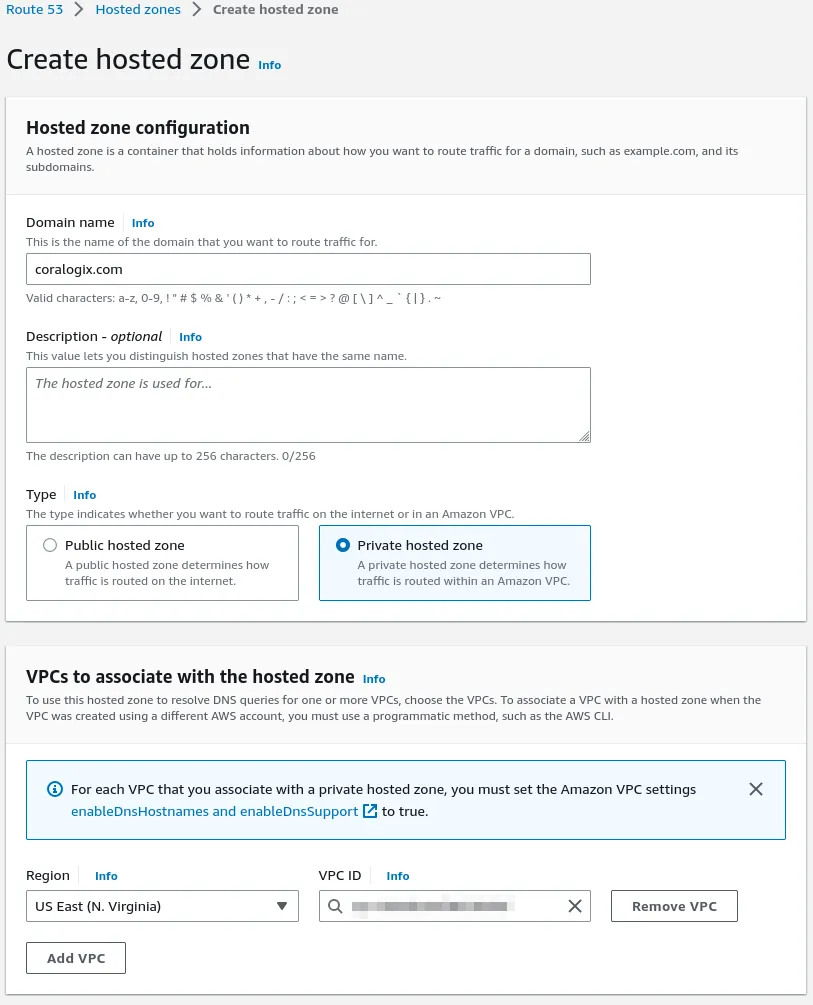 - Associate the hosted zone with the cross-region VPC where your Lambda or workload runs.