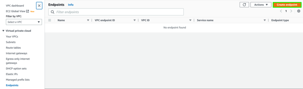 In the AWS Console, navigate to VPC, then Endpoints and select Create endpoint.