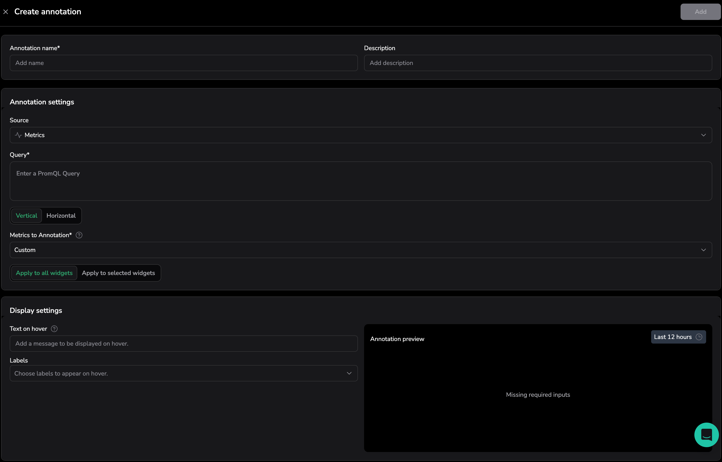 - Apply annotations to all relevant widgets in a dashboard or only to selected widgets.