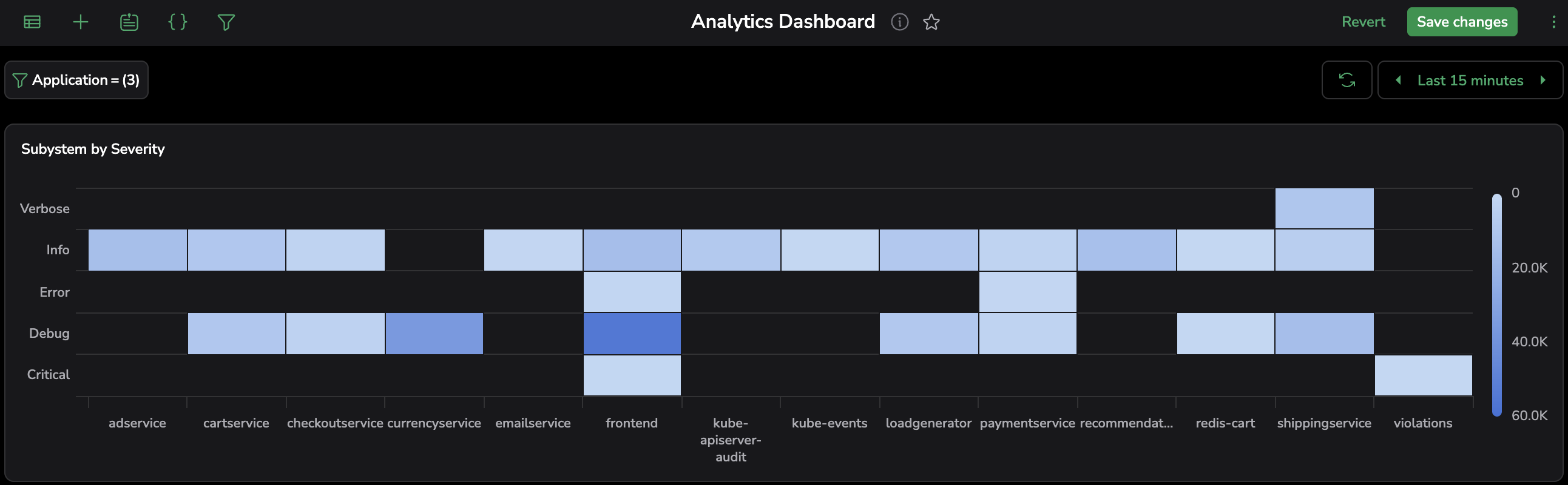 subsystem,severity,region). - Select an aggregation function such as Count, Sum, or Average to calculate the value represented by color intensity.