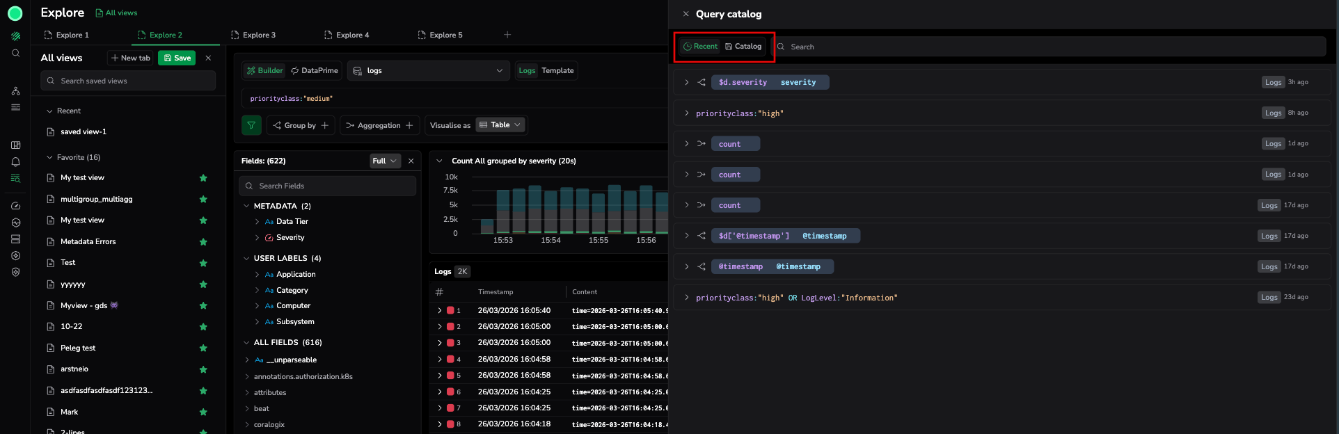 - Save the core query as a saved query named "Error rate by severity" for reuse in future sessions.