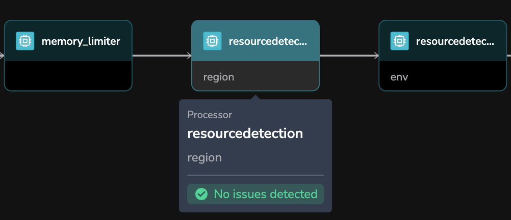 - Additional safeguard: If data flow issues are caused by misconfiguration (for example, an undefined exporter or structural error), Config Navigator surfaces the exact error location directly on the graph.