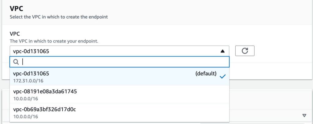 In the AWS Console, navigate to VPC, then Endpoints and select Create endpoint.