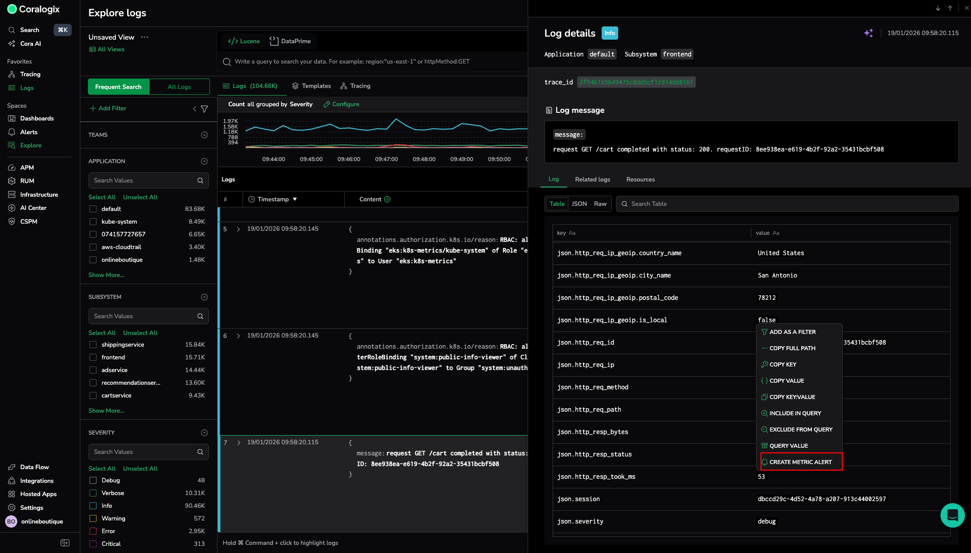 - This metric is automatically derived from the selected log attribute and behaves like any other metric.