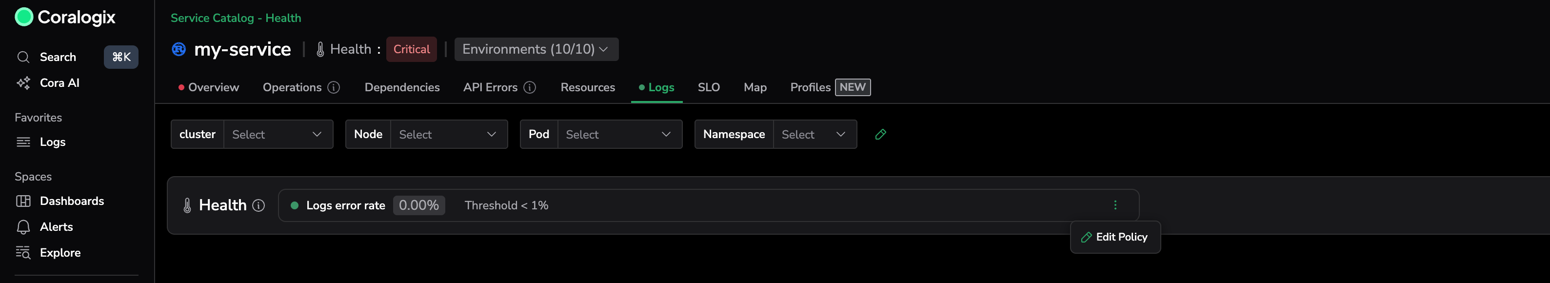 - Customizable thresholds: You can edit default policy values to match your service’s behavior or performance expectations.