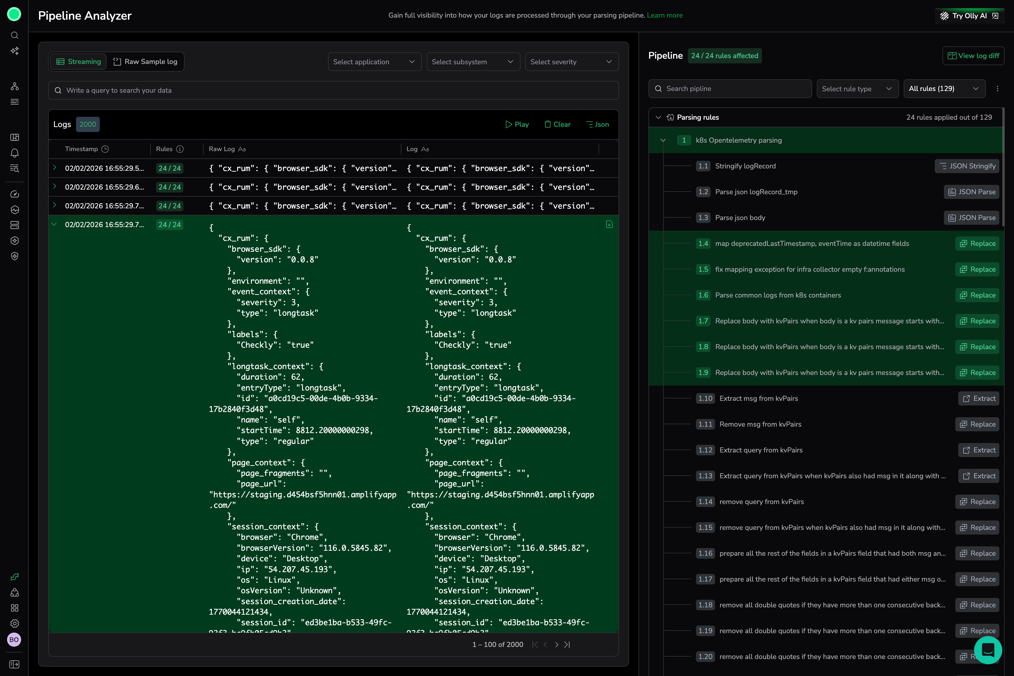But as environments grow, pipelines multiply, and misconfigurations, conflicting rules, or visibility gaps can lead to incorrect parsing, broken dashboards, and monitoring failures.