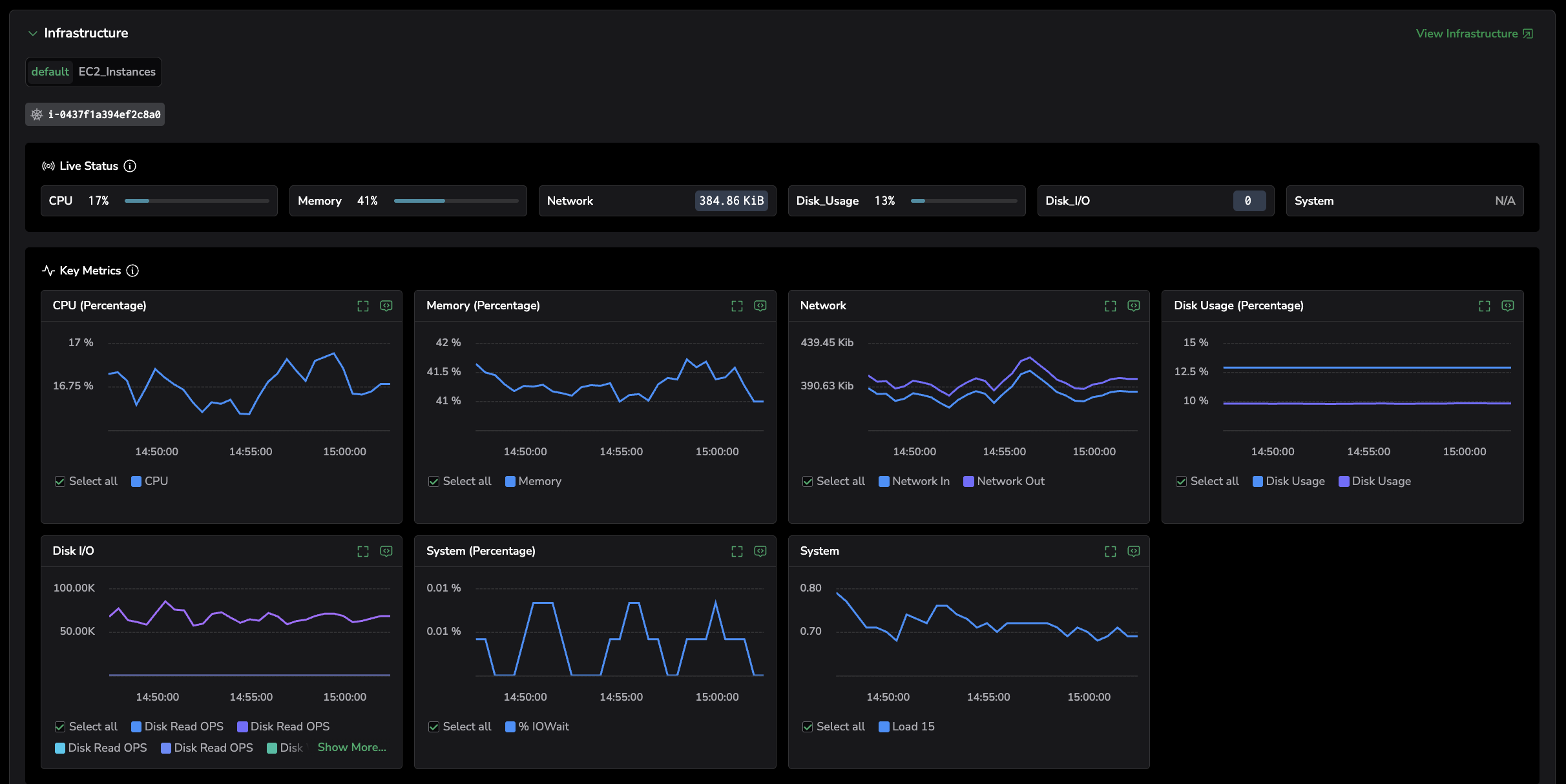 - Review correlated infrastructure metrics for the same time window, such as: