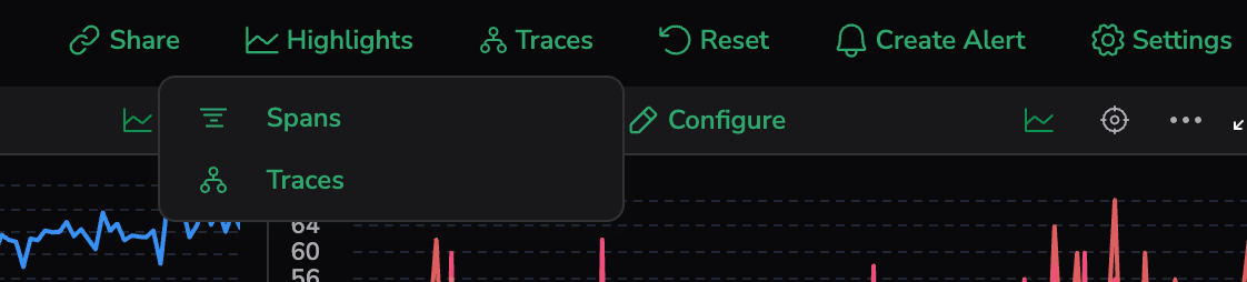 - Drilldown: Dive deeper into the metadata, logs, and context associated with a selected trace or span without leaving your workflow.