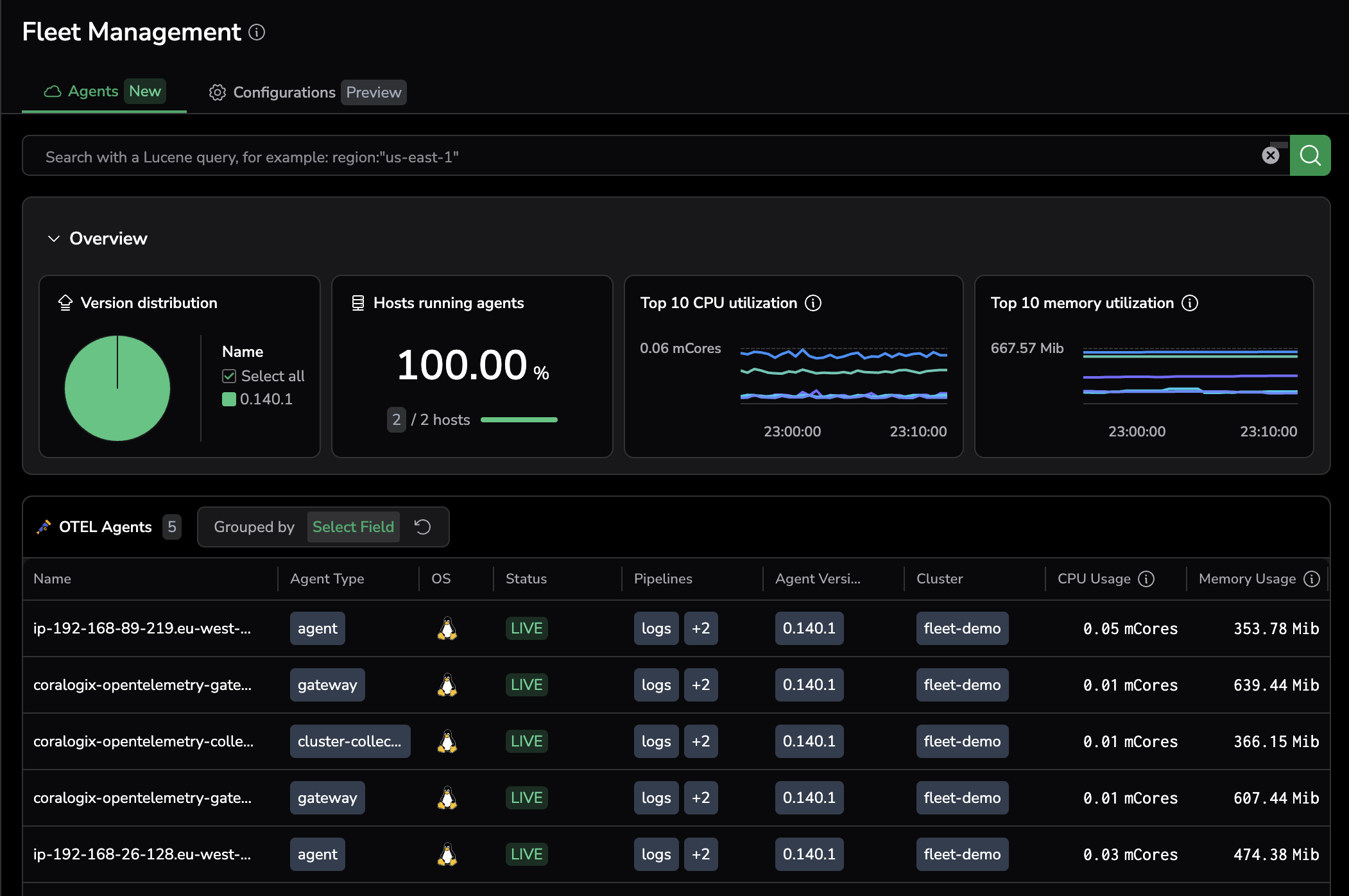 Explore your fleet in Coralogix