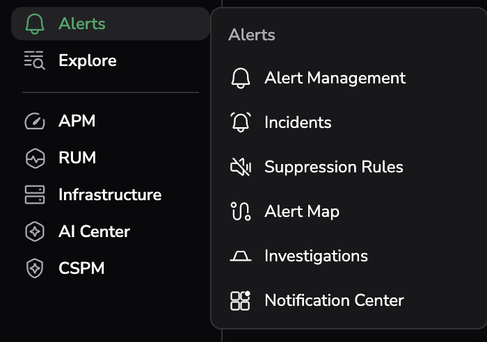 - Alerts: Create and manage alert rules and incidents.