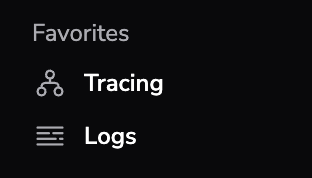 On any page, open the ⋮ menu or use the star icon to Add to Favorites. Your pinned items appear near the top of the sidebar. Use this for everyday destinations like Logs, Tracing, Dashboards, or Alerts. You can remove an item the same way.