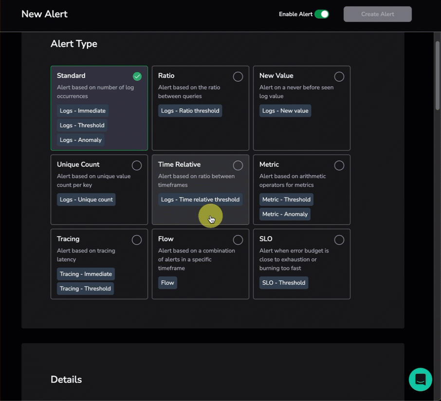 - Navigate to Alerts, then select Create Alert or edit an existing alert.